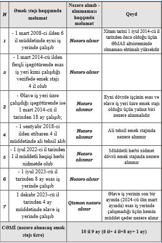 Mİsal. İşçinin əmək stajı aşağıdakı kimi olub:
