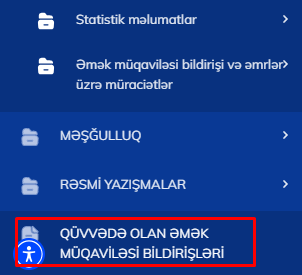 Yeni dəyişikliyə əsasən, ƏMAS altsitemində "Əmək müqaviləsi bildirişləri" bölməsi ləğv edilib, əvəzində "Qüvvədə olan əmək müqaviləsi bildirişləri" bölməsi yaradılıb. Həmin bölmədə elektron sənəd formasına bağlanmayan əmək müqaviləri üzrə altbölmələrin yaradılmasına ehtiyac duyulmayıb.