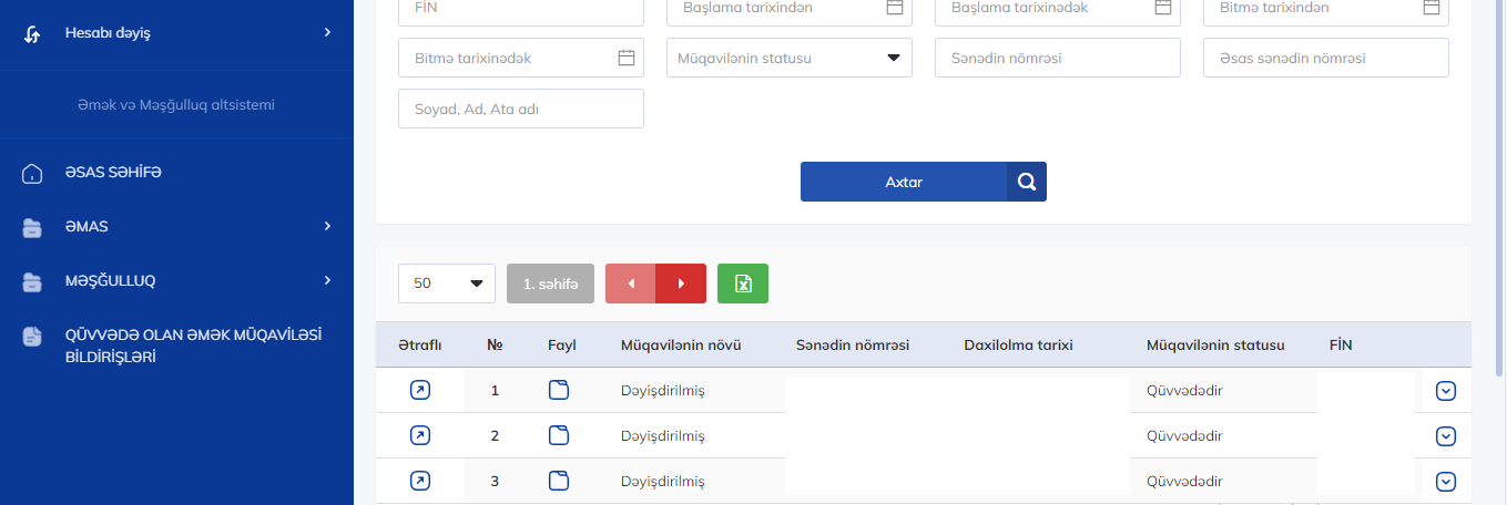 ƏMAS altsistemində yeni dəyişiklik həyata keçirilib. Dəyişikliyə qədər elektron sənəd formasında bağlanmayan yəni "onlayn" əmək müqaviləsinə keçid etməyən işçilərin əmək müqaviləsi haqqında məlumatlar "Əmək müqaviləsi bildirişləri" bölməsində qruplaşdırılırdı. Həmin bölmədə həmçinin qüvvədən düşən, ləğv edilən və ya müddəti bitən əmək müqavilələri haqqında da məlumatlar da ayrıca qeyd olunurdu.