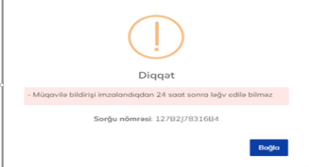 Sonda ƏMAS altsistemində “qüvvəyə minəcək” statusunda olan əmək müqaviləsinin 24 saatlıq müddətdən sonra ləğv edilməsi halında çıxan bildirişi təqdim edirik: