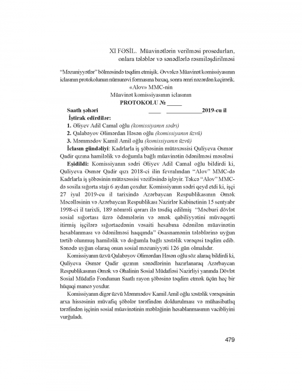 Hamiləlik və doğumla bağlı müavinətin komissiyasının iclasının protokolu necə tərtib olunur? (NÜMÜNƏVİ FORMA)