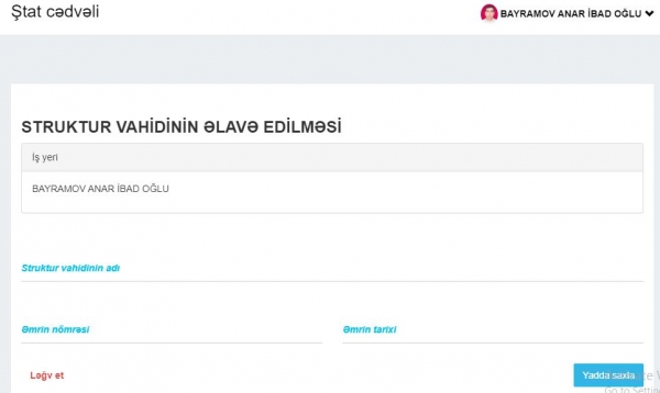 E-gov.az-da da qeyd edilən struktur vahidininin yaradılmasın rəsmiləşdirilməsi (ƏMR FORMASI)