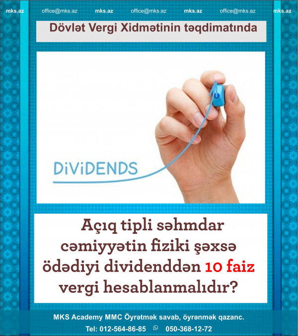 Açıq tipli səhmdar cəmiyyətin fiziki şəxsə ödədiyi dividenddən 10 faiz vergi hesablanmalıdır?