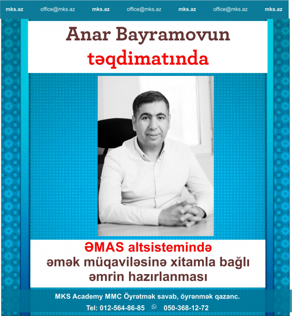 Anar Bayramovun təqdimatında: ƏMAS altsistemində əmək müqaviləsinə xitamla bağlı əmrin hazırlanması