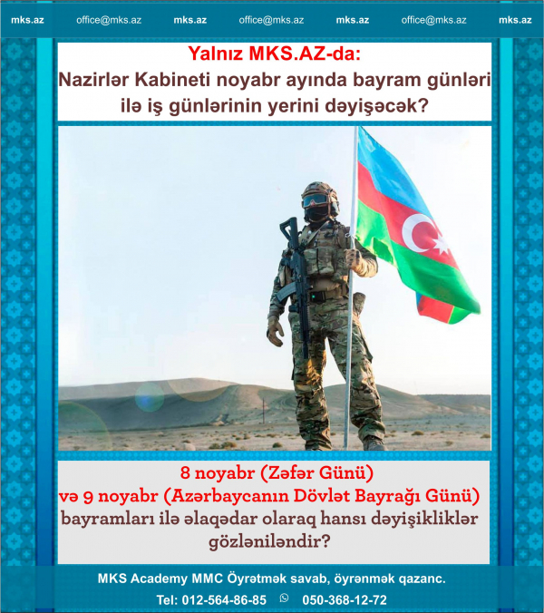 Yalnız Mks.az-da: Nazirlər Kabineti noyabr ayında bayram günləri ilə iş günlərinin yerini dəyişəcək?