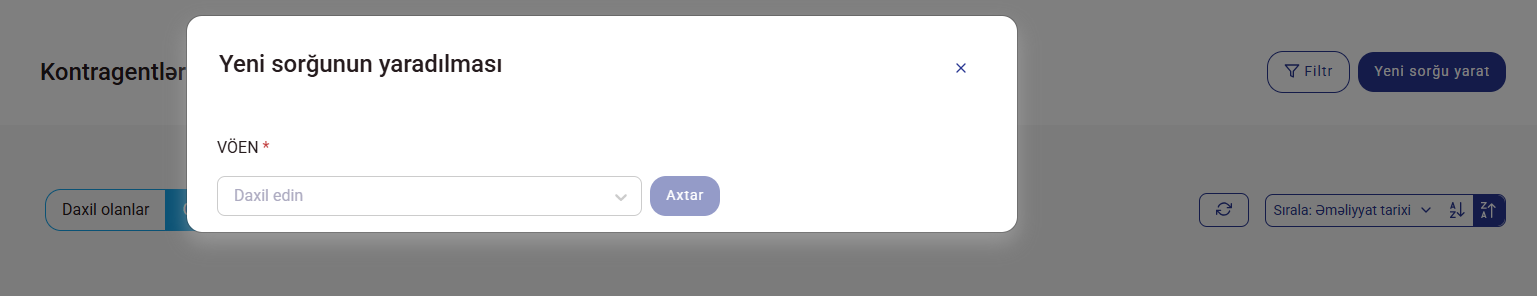 Açılan səhifədə yeni sorğunun yaradılmasını həyata keçirmək mümkündür: