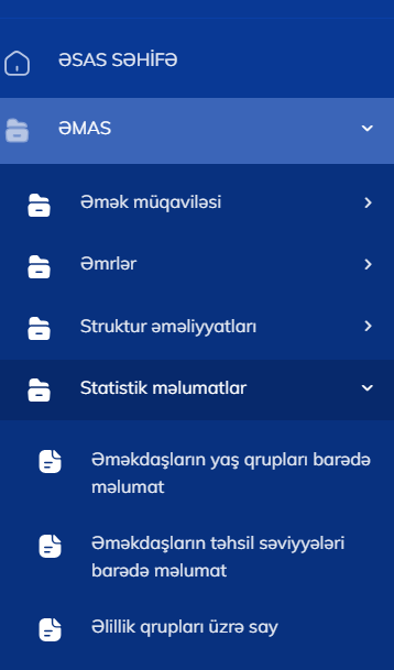 ƏMAS altsistemində işəgötürənlərin faydasına olan yeni dəyişiklik həyata keçirilib. Yeni dəyişiklikdən sonra işəgötürən əlilliyi olan işçilər haqqında məlumatları hesabat formasında əldə etmək imkanına malik olacaq. Həmin hesabatı əldə etmək üçün "ƏMAS" bölməsində "Statistik məlumatlar" altbölməsinin "Əlillik qrupları üzrə say" altbölməsinə daxil olmaq lazımdır: