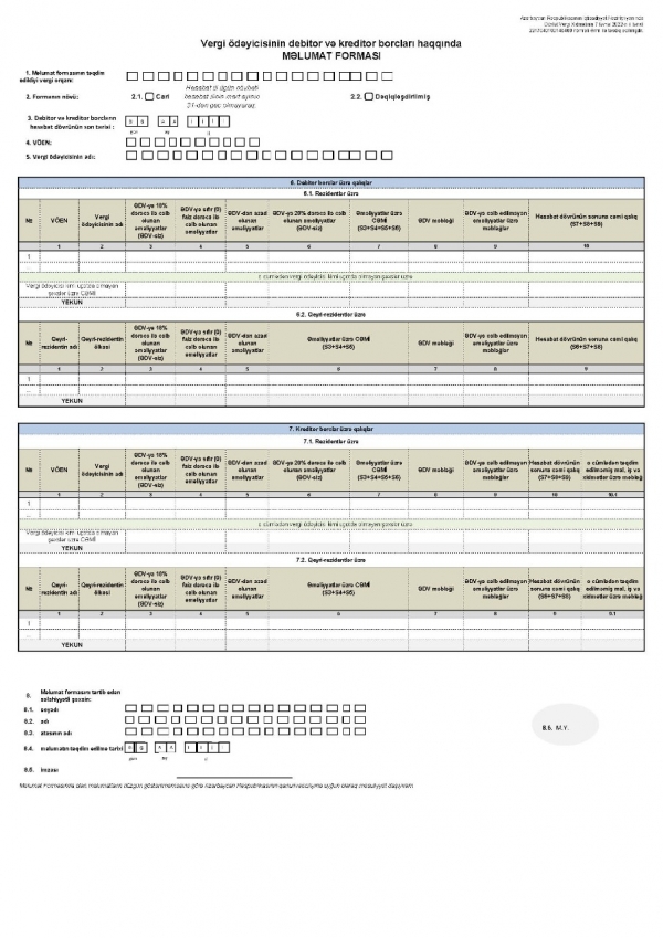 Diqqət! “Vergi ödəyicisinin debitor və kreditor borcları haqqında” məlumat forması təsdiq edildi