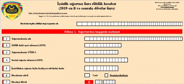 Vergilər Nazirliyi 2019-cu il və sonrakı dövrlər üzrə YENİ “Məcburi dövlət sosial sığortası üzrə rüblük hesabat” və "İşsizlik sığortası üzrə rüblük hesabat" formalar...