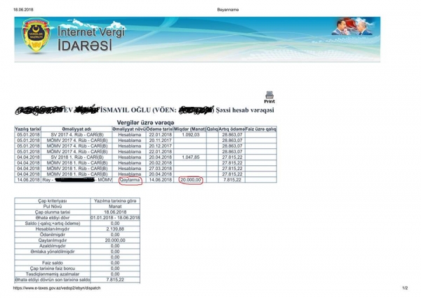 Şəxsi hesab vərəqəsi ilə bağlı maraqlı sətir: Təsdiqlənməmiş azalmalar