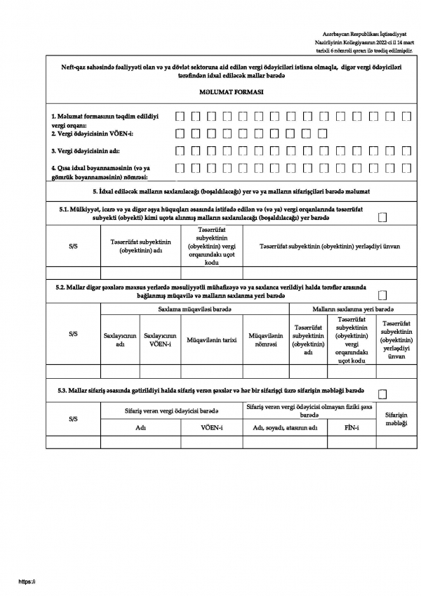 İdxal ediləcək malların məlumat forması üzrə MALİYYƏ SANKSİYALARI (2-ci yazı)