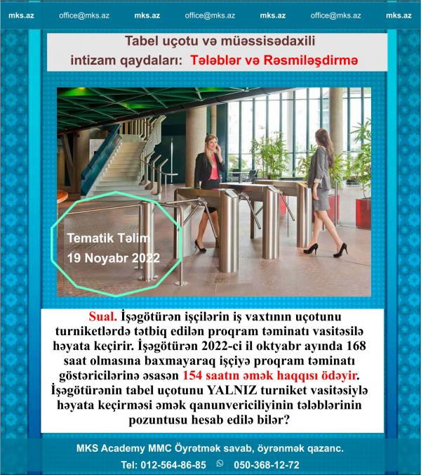 İşçilərin iş vaxtının uçotunun turniketlərdə tətbiq edilməsilə bağlı SUAL