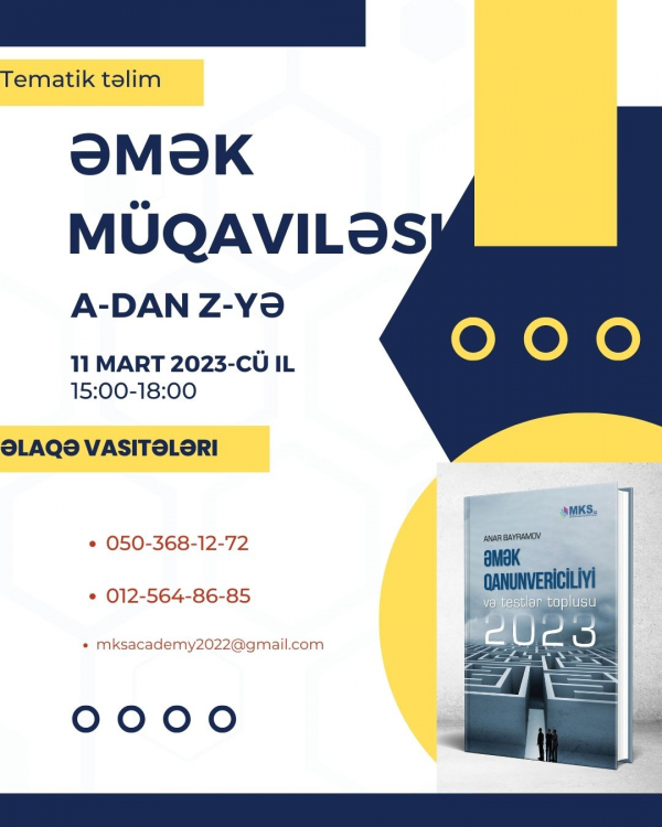“Özəl və dövlət qurumlarında əmək müqaviləsinin bağlanması, dəyişiklik və xitam edilməsi prosesi: A-dan Z-yə” mövzusunda təlimində müzakirə olunacaq SUAL